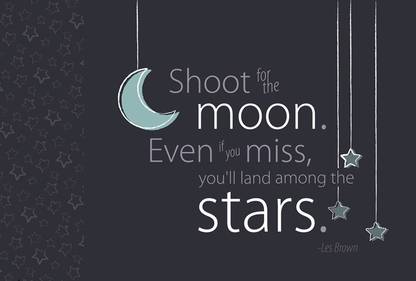 Shoot for the moon because even if you miss you miss youll land in the stars. Shoot for the moon even if you miss youll land among the stars. Shoot for the moon and if you miss you will still be among the stars.